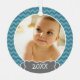 Adorno Metálico Foto Babys Primera Navidad - chevrys azules grises