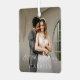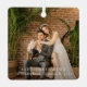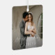Ornamento de vacaciones moderno con un diseño sencillo y mínimo con "primeros Navidades" en un guión elegante sobre tu foto favorita. Utilice la plantilla para añadir "casados" o comprometidos". La parte posterior tiene una segunda imagen y detalles adicionales. Este adorno navideño minimalista neutral es genial para una pareja recién casada o una pareja recién casada que está celebrando su primera Navidad juntos.