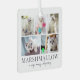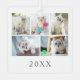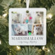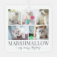 Este simple y elegante adorno navideño cuadrado inspirado en boho es una dulce manera de celebrar a tu gato durante la temporada navideña. El diseño presenta un diseño de collage con espacio para cinco fotos en la parte delantera y trasera, lo que lo convierte en un recuerdo de doble cara lleno de tus recuerdos felinos favoritos. El nombre de tu gato se muestra debajo del collage en la parte delantera en una fuente serif clásica, con una línea de texto personalizable debajo. Puedes dejarlo como "Una Navidad muy Meowy", o cambiarlo a una nota de amor corta, "En memoria amorosa" o "Por siempre en nuestros corazones" para un memorial.