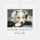 Este simple y elegante adorno navideño cuadrado es una forma divertida de mostrar la personalidad de tu mascota durante la temporada navideña. El diseño presenta espacio para una foto en la parte delantera y otra en la parte trasera, lo que lo convierte en un recuerdo de doble cara lleno de momentos adorables (y tal vez traviesos). "Define travieso" se muestra debajo de la foto frontal en una fuente serif clásica, con el nombre de tu mascota escrito debajo en letra cursiva suave para un toque juguetón y personal.