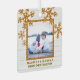 Fotos personalizadas Los adornos navideños hacen hermosos regalos de sake para amigos y familia, y este elegante falso copo de nieve de oro y falso diseño rústico de madera blanca añade un toque de Navidad a tu decoración mientras realzas tus preciadas fotos. Fácil de personalizar, estos ornamentos de fotos personalizados tienen plantillas de texto y fotos fáciles que le permiten añadir su foto y texto personalizado en un color oro oscuro. Si prefiere los ornamentos sin texto, simplemente elimine y borre el texto del marcador de posición para eliminarlo. Sube tu atesorada foto y mira cómo se convierte en parte de este lindo diseño, bordeado por un falso purpurina de oro y acentuado con cinco falsos copos de nieve purpurina de oro cayendo sobre estos adornos de vacaciones de aluminio. Impreso a ambos lados, sólo para usted, estos adornos dorados de copos de nieve y fotos rústicas de madera son fantásticos keepsakes de Navidades para niños y adultos por igual.