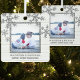 Fotos personalizadas Los adornos navideños hacen hermosos regalos de sake para amigos y familia. Este elegante falso copo de nieve de plata y falso diseño rústico de madera blanca añade un toque de Navidad a su decoración mientras resalta sus preciadas fotos. Fácil de personalizar, estos ornamentos de fotos personalizados tienen plantillas de texto y fotos fáciles que le permiten agregar su foto y texto personalizado en gris plateado oscuro. Si prefiere los ornamentos sin texto, simplemente elimine y borre el texto del marcador de posición para eliminarlo. Sube tu atesorada foto y mira cómo se convierte en parte de este lindo diseño, bordeado por un falso purpurina plateado y acentuado con cinco falsos copos de nieve purpurina plateado cayendo sobre estos adornos de vacaciones de aluminio. Impreso en ambos lados, sólo para ti, estos adornos de copos de nieve de plata y fotos rústicas de madera son fantásticos keepsakes de Navidades para niños y adultos por igual.