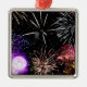 Fuegos artificiales hermosos que estallan sobre un cielo nocturno oscuro en una exhibición magnífica del final.
