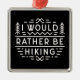 Hiker introvert funny quotes I would rather be hiking. Retro vintage black and white aesthetic mountain hike lovers sarcastic humor sayings themed home decor holiday season Christmas tree ornament.
