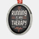 Correr es mi terapia decoración de época navideña adornada con árboles de Navidad. Funny runner marathoner cita a las mujeres en salud mental. Corre adicto jogger chistes de largo plazo lindo corazón latir regalos estéticos negros y rojos.
