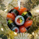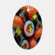 Ornamento navideño con una imagen realista de un plato de sushi. En la parte de atrás hay un bonito juego de sushi para Navidades y un lugar para que añadas un mensaje personalizado.