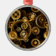 Sin soldadura, metalizado, latón, engranajes dorados sobre un fondo oscuro y oxidado. Estilo Steampunk.