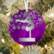 Este elegante adorno navideño presenta una gimnasta chica plateada posando en el haz de equilibrio frente a un rociado de copos de nieve de plata. La imagen se coloca sobre un fondo violeta violeta y abstracto. La parte posterior del adorno tiene el mismo fondo morado, con un borde de copos de nieve de oro pálido y el texto de tu personalizado. ¡Perfecto para la gimnasta de su vida!