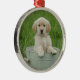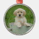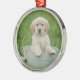 El dorado de Purebred recupera cachorro bañándose al aire libre en una bañera vintage de color crema sentada en el césped con las patas al borde. Es un adorable perro bebé de color rubio y rubio con ojos marrones y nariz negra.