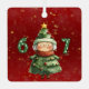 Granny dressed as a Christmas tree, holding the six seven, for a fun Christmas ornament of this new craze.
