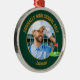 This cool customized high school golf team photo gift features gold typography of your golfer name on a Christmas ornament with a cute golfing icon on a dark green background. Personalize with your student's photograph and class year as a proud sports parent.