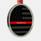 La simbólica Línea Roja Delgada en una bandera estadounidense como muestra de apoyo a los bomberos y como regalo para ocasiones de premios, graduación, conmemoración y conmemoración. Utilice el enlace "Mensaje" para contactarnos con sus solicitudes de diseño especiales o para obtener alguna ayuda con sus necesidades de personalización.