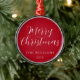 Este elegante ornamento minimalista, moderno y de Navidad cuenta con un elegante guión moderno de caligrafía en blanco con fondo rojo.