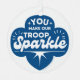 Este adorable ornamento navideño de exploraciones es perfecto para cualquier explorador o líder. La cita dice: "Usted hace brillar a nuestra tropa". El mismo diseño está en ambos lados, pero puede borrar el diseño de un lado si desea añadir un mensaje personal. Este sería un gran regalo para cualquiera que esté involucrado en la exploración.