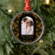 Este hermoso adorno navideño presenta un elegante arco botánico floral de color dorado enmarcado con foto y elegante guión de Navidades casados con el año sobre un fondo negro. Perfecto para la primera Navidad de la pareja recién casada como el Sr. y la Sra. Comprar esta tienda para coordinar Navidades tarjetas de felicitación, ornamentos y opciones de color de vacaciones adicionales!