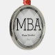 Un adorno para un graduado de MBA con un esquema de color gris y negro, y un patrón de hueso de arenque en el fondo. Muestra el grado, nombre y año. Simplemente personalizar este ornamento, agrégalo a tu carrito, y ten un gran logro. Herringbone Gray Black MBA Graduación Nombre Año Ornamento Metalizado Diseño Vacacional | ©Melissa Patton - Diseñador