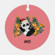 Este Ornamento Metalizado de los Navidades del oso de la Alegría Panda ocupará un lugar preponderante en su árbol de Navidad este año. Con una lujosa cinta blanca para colgarla y la opción de una tierna bolsa de regalo para aguantarla. Puede personalizar este ornamento con un año, nombre y color de fondo.