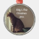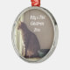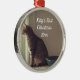 Este adorno de árbol de Navidad tiene un gato tabby de rayas marrones y negras que mira por la ventana. Personalice con su imagen y texto.