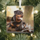 Captura recuerdos con un adorno de Navidad de foto de mascota personalizada. Atesora a tu amigo peludo todo el año con nuestro diseño elegante y moderno que presenta una plantilla de foto completa y letras de escritura juguetona, acentuada por una delicada huella de pata blanca. ¡Perfecto para dueños de mascotas que buscan agregar un toque único a su decoración navideña!