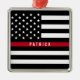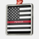 Esta línea roja fina ornamento del bombero blanco y negro patriótico de la bandera americana tiene un nombre con monograma para que usted personalice. Un regalo único para las ocasiones especiales y el navidad para los bomberos y primero+respondedores. Diseñado por el ©Tim renombrado Coffey del artista del mundo.