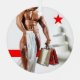 Navidades de SlipperyJoe comprando un árbol de espirales de papel blanco coronado por una vibrante estrella roja que golpea el tema de las vacaciones atrevida banda de escarlata corriendo horizontalmente sexy hombre muscular de pecho parcialmente vestido hoja de cama artística sin camisa regalo de tipo bolsos de compras estacionales regalos de orgullo gay alegrías LGBTQIA