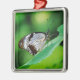 Marrón oscuro y mariposa gris contra un fondo de verde.