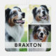 Descubre la exquisita complejidad de nuestro adorno de mascota moderno con una plantilla de collage de 3 fotos única. Muestra a tu querida mascota con estilo con nuestro bloque de superposición blanco personalizable que muestra el nombre de tu mascota. Un adorno que trasciende lo convencional, ofreciendo una mezcla perfecta de toque personal y diseño moderno. Un imprescindible para todo amante de las mascotas y un regalo espléndido para amigos y familiares.