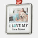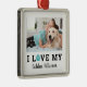 Este moderno ornamento vacacional para los amantes del perro presenta la frase "I LOVE MY" en letras modernas y audaces en negro con un acento verde azulado/turquesa de color azul en la huella de la pata animal. Personalice el guión negro con el tipo de mascota o el nombre del mascota Añadir una foto horizontal favorita. Color del fondo blanco.