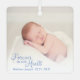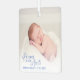 Este adorable adorno navideño conmemorativo con la foto, el nombre, las fechas vivientes y las palabras "Para siempre en nuestros corazones" en un hermoso azul suave se vería hermoso en tu árbol. Una manera triste pero maravillosa de recordar a tu dulce hijo.