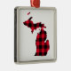 La forma del estado de Michigan en un patrón de búfalo rojo y negro trenzado a cuadros. Cambie el color de fondo o agregue un mensaje de texto de recuerdo personalizado. Crea tu propio ornamento de vacaciones.
