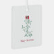 "Una encantadora mezcla colgante adornada con exuberantes hojas verdes, delicadas bayas blancas y un vibrante arco rojo en la parte superior, que capta el espíritu festivo de las tradiciones de las vacaciones".