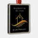 Esta moda inmobiliaria compañía navideña es personalizado hecho con su compañía de propiedades inmobiliarias y el nombre de su agente. Estos elegantes ornamentos de vacaciones en negro y oro incluyen una casa de bonito con un tervano en la parte superior y elegantes curvas debajo. Personalice este regalo de marketing de negocios con su propia información y sustituya el logotipo por el suyo propio.