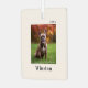 Modern Ivory Custom Name Photo metal ornament with your pet’s name in a gray, bold serif font. Your pet's photo is framed with a thin white line on an elegant ivory background.