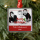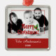 Adorno Metálico Modern Merry Christmas and Holly Custom Photo Red