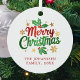 Haz que tus recuerdos de vacaciones brillen con esta moderna Navidad Keepsake Typography Family Ornament Metalizado! El diseño presenta una audaz tipografía roja y verde de la Navidad del Cerezo, rodeada de bayas huecas, estrellas doradas brillantes y delicados copos de nieve sobre un fondo blanco y fresco. Personaliza con tu apellido, mensaje especial y año "establecido" en rojo festivo. Diseñado sobre un metalizado duradero, este adorno es el perfecto conservador moderno y rústico del tesoro año tras año. Un hermoso accesorio de vacaciones para tu árbol de Navidad o un regalo para los seres queridos.