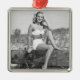 Bikini que lleva de la mujer que se sienta en la playa de la conexión, (B&W), (retrato) marcas del | George el | AssetID: 57416977