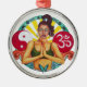 Arte original de Sandra Gale en un adorno redondo que muestra un diseño inspirador con el cartel de ohm, yin-yang y otros con una hermosa mujer meditando. Un diseño único y colorido de espiritualidad perfecto para todos.