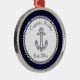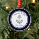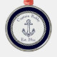 Nautical Anchor Navy Ornamento Metalizado azul y blanco