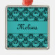Modernos y elegantes Navidades Bliss Premium Square Ornament. Este adorable adorno con un diseño de damasco de diseño haría un maravilloso regalo de mantenimiento cuando se personaliza con un nombre u otro texto.