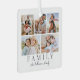 Este sencillo y elegante adorno cuadrado de Navidad inspirado en el boho es una hermosa manera de celebrar a la familia durante las vacaciones. El diseño presenta un diseño de collage con espacio para cinco fotos en la parte delantera y trasera, lo que lo convierte en un bizcocho lleno de recuerdos. "Familia" se muestra debajo del collage en una fuente serif clásica, y hay espacio en un guión suave para agregar tu nombre familiar, nombres o un mensaje corto. En la parte trasera, el año se agrega abajo para un toque personalizado que marca el momento en el tiempo. El fondo blanco y el gris suave le dan un aspecto limpio y atemporal que funciona con cualquier decoración de árbol. Todas las fuentes, colores y fotos se pueden personalizar completamente para que coincidan con su estilo. Un regalo de vacaciones atento y personal para cualquier familia.