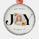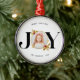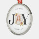 Este moderno ornamento navideño presenta un diseño elegante y elegante con un toque de elegancia festiva. La parte delantera del Ornament muestra un hermoso diseño "JOY" con un delicado marco dorado, perfecto para incorporar una foto familiar atesorada. El patrón geométrico único con una capa dorada sutil añade un toque de sofisticación y crea un atractivo visual.