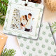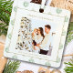 Green Gingham Plaid Watercolor Photo Square Navidades Holiday Ornament - Elegante foto de la familia personalizado texturado diseño de ilustracion acuático. Personaliza con tu foto, nombre y año de familia.
