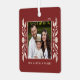 Celebra tus preciados recuerdos con este elegante adorno de fotos de arándanos rojos y crema. Con un marco floral de estilo de arte folclórico atemporal a lo largo de los lados, este diseño mantiene el foco en tu foto favorita mientras añade un toque de sofisticación festiva. Personalizado con el nombre y el año de su familia, es el perfecto placer de colgar en su árbol de Navidad o de regalar como un regalo de vacaciones reflexivo. El diseño limpio y los colores clásicos lo convierten en una pieza que apreciará año tras año. El color de fondo se puede personalizar a cualquier color que desee.