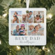 Ornamento de Navidad de la Plaza del Mejor Papá Personalizado. Este sencillo y elegante adorno cuadrado es una manera sincera de celebrar a papá durante la temporada navideña. El diseño incluye espacio para cinco fotos personales, con "Mejor papá" desplegado debajo de una fuente clásica serif. Debajo de eso, puedes agregar "Amor, los nombres de los niños" en escritura suave —o usar este espacio para una segunda línea personalizado de tu elección. El fondo blanco y el gris suave le dan un toque atemporal y refinado, perfecto para cualquier árbol de Navidad. Personalizable completo, puede cambiar el texto, los tipos de letra, los colores y las fotos para hacerlo único suyo. Un conservador significativo y un dulce regalo de vacaciones que le recuerda a papá lo mucho que se aprecia cada vez que lo ve.