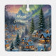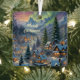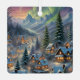 Este Ornament cuenta con un pueblo cubierto de nieve con casas luminosas en las montañas, rodeado de altos árboles de abetos, luces polares brillando en el cielo. Decoración de bonito y también un maravilloso regalo de navidades pequeños. Texto personalizado.