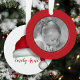 Agradable y caprichoso Navidades de feriado Merry Mistletoe. Foto Ornament. Personalizado con un nombre personalizado. Un regalo de moda para los Navidades de vacaciones. Una forma divertida y moderna de celebrar las fiestas. Este diseño presenta Navidades vacaciones Papá Noel moderno lindo, foto gorra rojo brillante, minimalista simple y adorable Papá Noel, moderno y mínimo, Santa sombrero rojo color de agua, clásico básico tradicional, personalizar personalizado de nombre de año, tipografía de textos de caligrafía linda, arte de Laura Lacina, ornamento fotográfico de Navidades de vacaciones