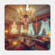 Ornamento navideño personalizado. Acogedora y verde azulada casa de campo de estilo Kitsch vintage, con decoración de vacaciones y luces Navidades y una lámpara de araña colorida con vigas retro. Les deseamos un Navidad acogedor y un feliz año nuevo. El texto posterior de este adorno de vacaciones puede ser personalizado, por lo que puede añadir su nombre si lo desea o cambiar el saludo de vacaciones.