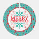Tómate un Navidad de estilo moderno de mediados de siglo. Este adorno de cerámica decorativa de Navidad presenta diamantes verde azulados retro y oscuros y estribos sobre fondo verde azulado acuático claro.