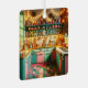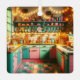 Ornamento navideño personalizado. Acogedora y verde azulada casa de campo de estilo kitsch rosa y cocina verde azulada llena de decoraciones navideñas y luces de Navidad y una lámpara de araña colorida con vigas retro. Les deseamos un Navidad acogedor y un feliz año nuevo. El texto posterior de este adorno de vacaciones puede ser personalizado, por lo que puede añadir su nombre si lo desea o cambiar el saludo de vacaciones.