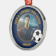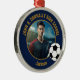 Adorno Metálico Navy Blue Gold Soccer Player Photo Christmas